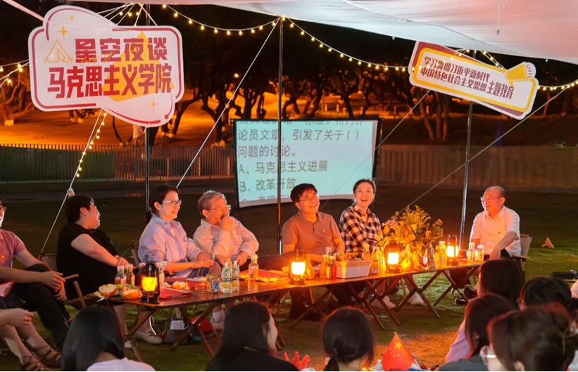 Amid a gust of breeze, the lights were just turned on as darkness fell. On the eve of the 74thChinese Youth Day, the CPC Committee of the Marxism College hosted a May 4thYouth Day event entitled "Talks on A Starry Night" for education on learning and acting on Xi Jinping Thought on Socialism with Chinese Characteristics for a New Era, also to mark the 104thanniversary of the May 4thMovement and celebrate the 40thanniversary of Shenzhen University (SZU).