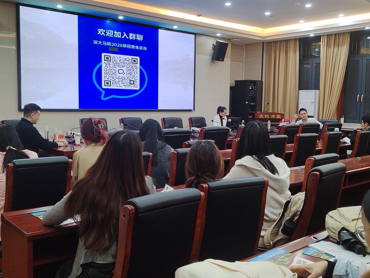 招生宣讲会上,院长刘志、副院长孙婷婷、副院长任恒和硕士生导师郭小说详细介绍了深圳大学以及暗网禁区